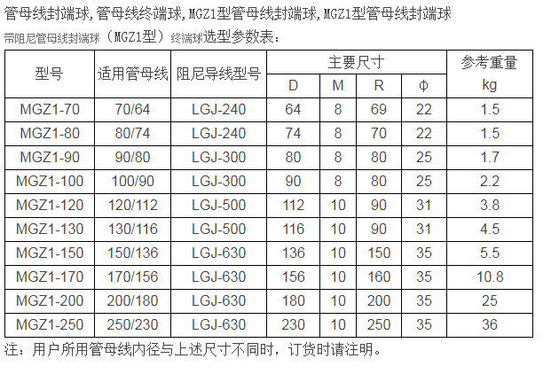 • 產(chǎn)品:帶阻尼管母線(xiàn)封端球(MGZ1型)